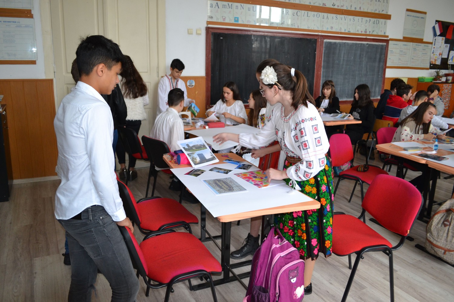 Posterele au fost expuse în holul școlii.